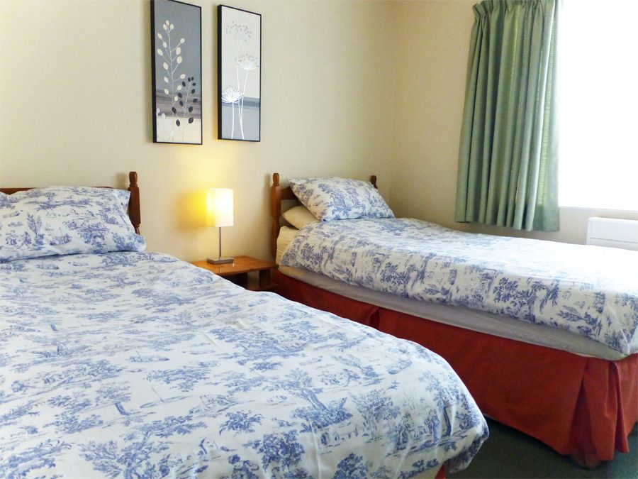 The first bedroom is a double; the second has 2 standard singles; the third is also a twin room with 1 standard single and 1 slightly narrower single bed.